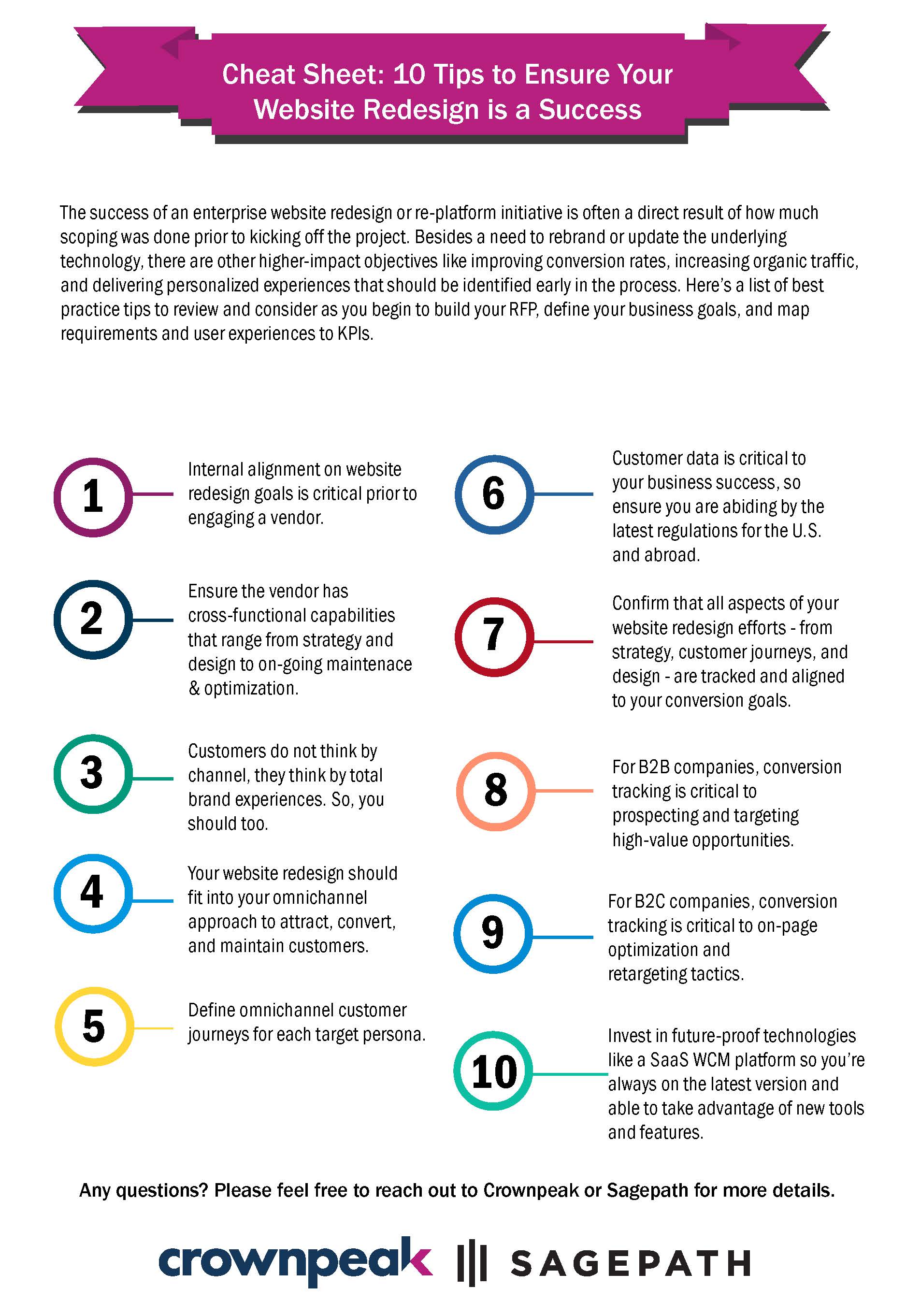 But, the more planning that’s done at the outset (even prior to the RFP process) the more likely the project is to be a boon for the organization. That’s why together with our partner, Sagepath, we created this “Cheat Sheet: 10 Tips to Ensure Your Website Redesign is a Success.” It’s a great starting point for getting the stakeholders in your company on the same page prior to kicking off a website project.